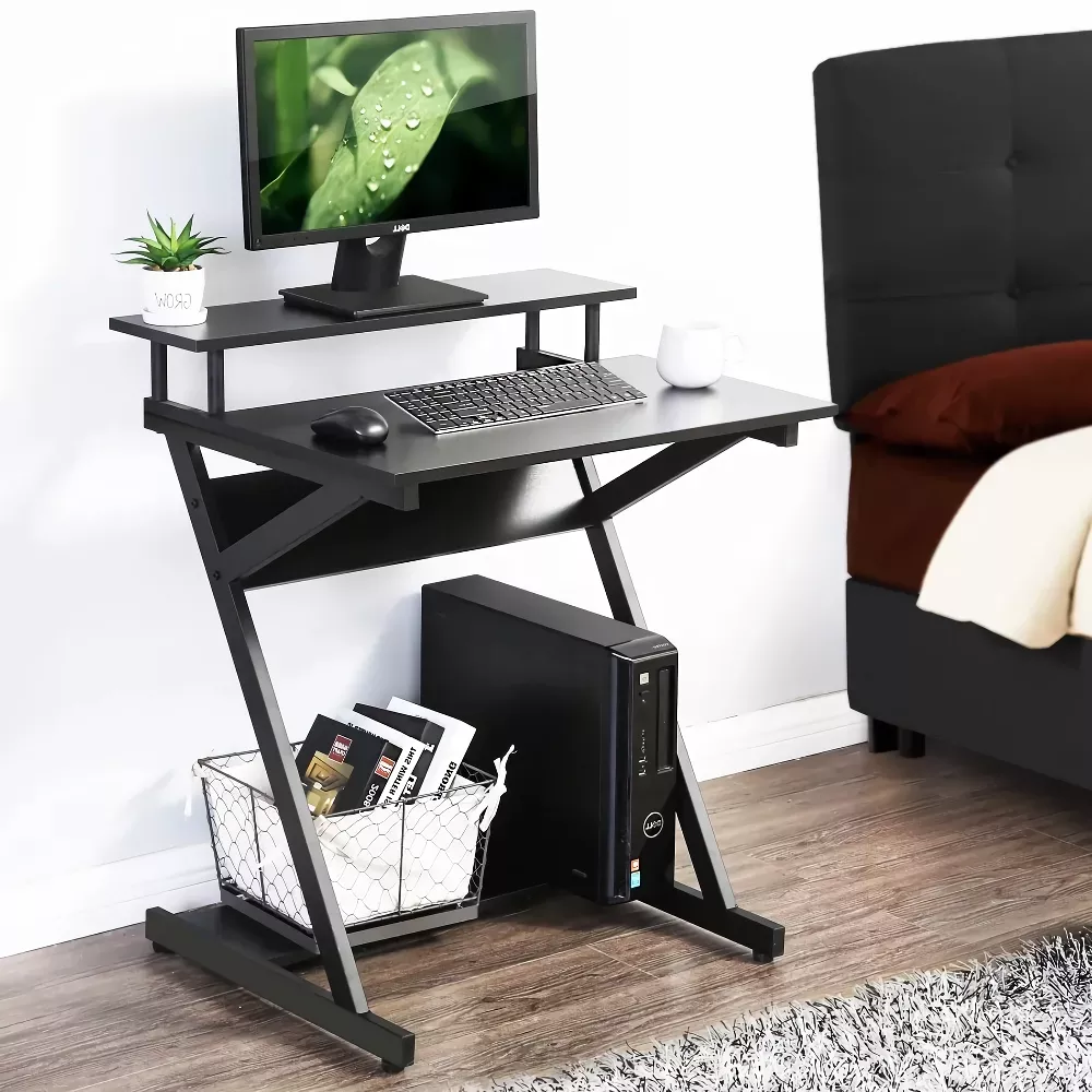 Compact Modern Z-Shaped Computer Desk with Monitor Shelf for Small Spaces