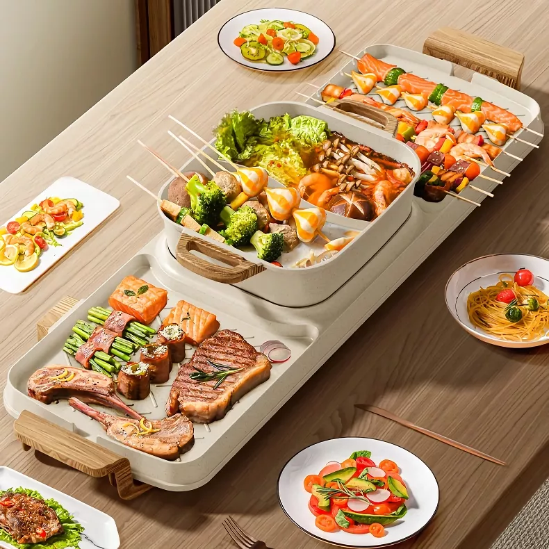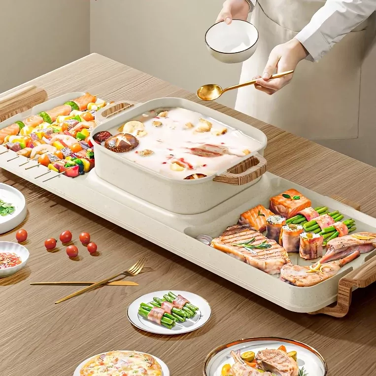 Whether it’s a family get-together, a weekend party with friends, or a cozy meal for two, this hot pot and grill is designed for every occasion. Its smokeless operation ensures a pleasant indoor environment, while the non-stick surface makes cooking and cleanup a breeze.